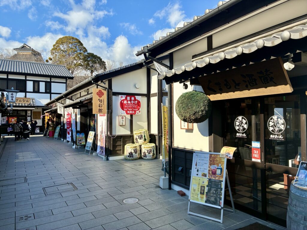 お城のふもとにある「桜の馬場 城彩苑」は、江戸時代の城下町を再現したエンターテインメント施設です。