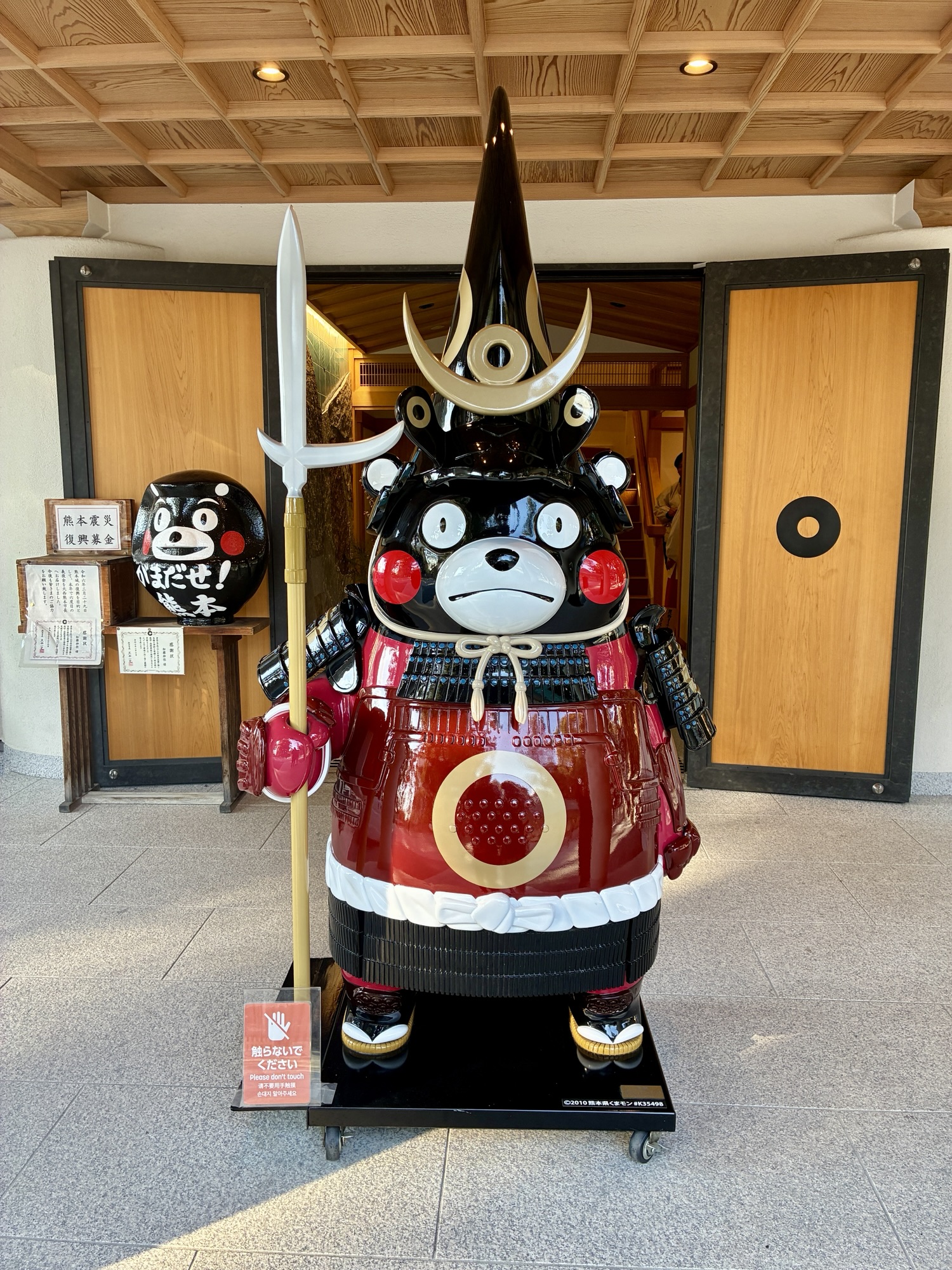 境内の建物入口にいる武将くまモンにとても癒されます。