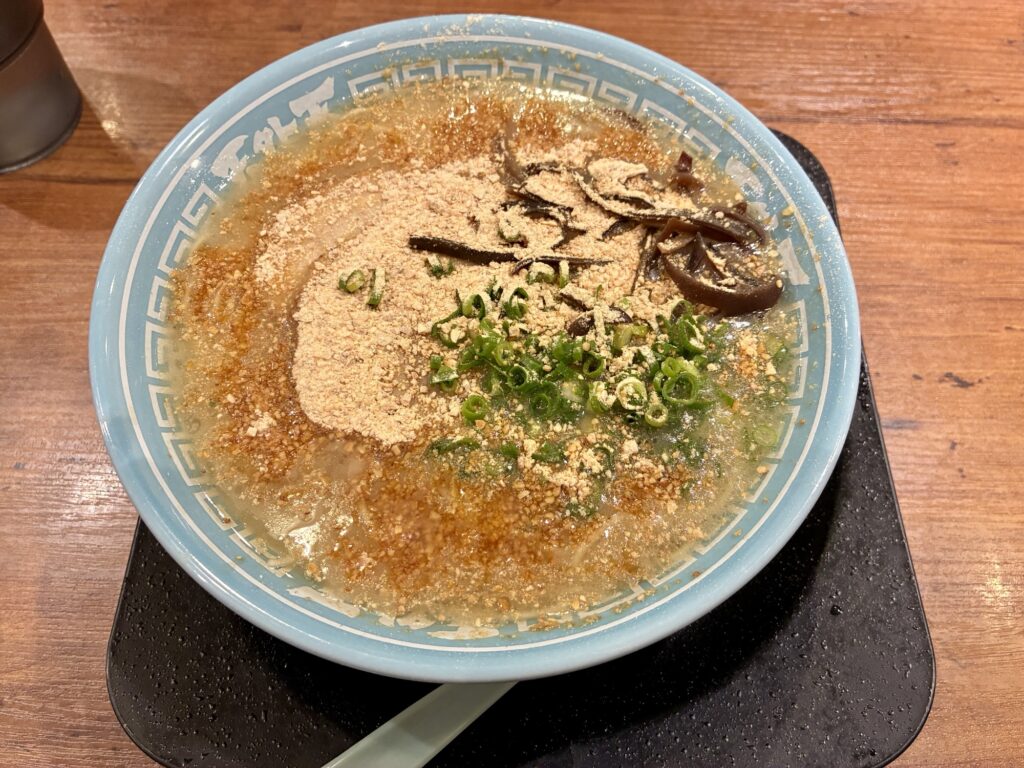 くどくない豚骨スープに、ニンニクパウダーがかかったラーメンで、ニンニク好きな方はたまりません。