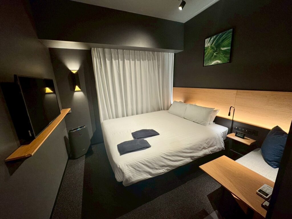今回宿泊したお部屋「クイーンダブルルーム」は、コンパクトながらも天井が高いため、開放感はしっかりあります。